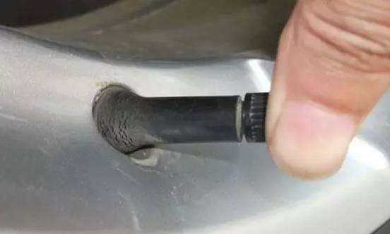 如果在轮胎上没有发现异常,那么我们可以将注意力转移到气门嘴上。家用车基本上配备真空胎,气门嘴安装在轮毂上,其材质多为橡胶。橡胶材质的气门嘴在使用一段时间后,在日晒雨淋和胎内气压的夹击下,会慢慢老化,质感逐渐变硬,最终龟裂漏气。